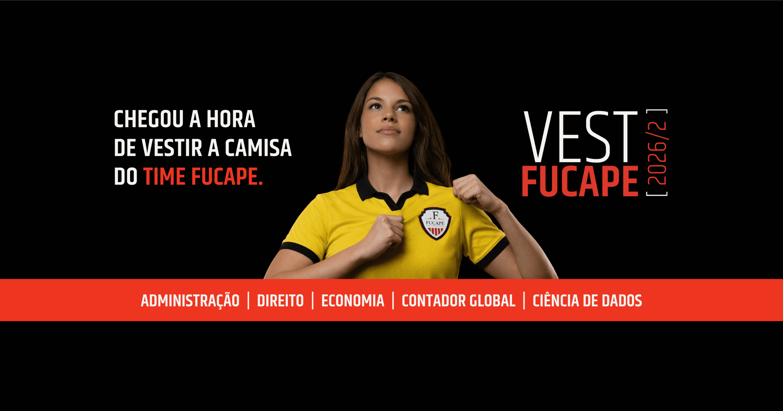 Chegou a hora de vestir a camisa do time Fucape. Para quem sonha em seguir carreira em Administração, Direito, Contador Global, Economia e Ciência de Dados, essa é a oportunidade de iniciar uma formação de excelência, preparada para desenvolver profissionais prontos para ocupar espaços de destaque.